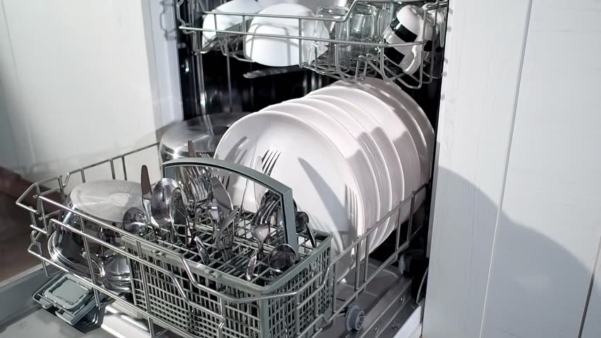 2. Dishes, glassware, cookware, and utensils should be washed and put away in the cabinets -OR- placed in the dishwasher, and the cycle started.